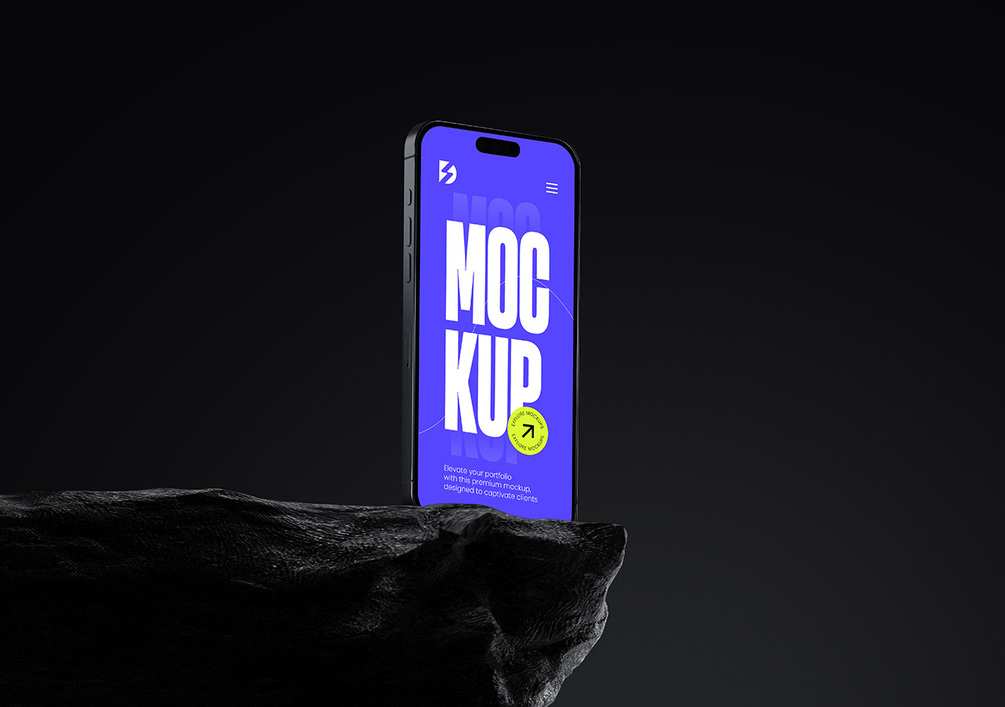 Discover our premium Apple device mockup collection, featuring the latest iPhone, iPad Pro, and MacBook Pro. Each mockup is designed with ultra-realistic detail and 6K resolution, ensuring your designs shine with clarity and precision. The devices are artistically placed on natural rock surfaces, set within a dark, moody environment that adds depth and sophistication to your presentations.